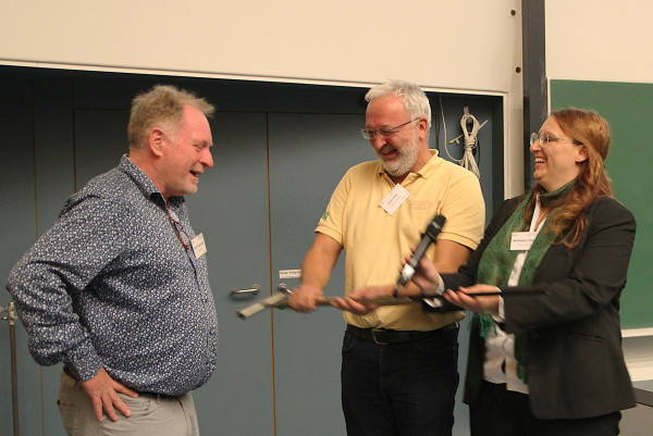 From 2 to 11 September 2027, the Annual Meeting of the German Soil Science Society (DBG) will take place in Hannover. At Annual Meeting at the University of Tübingen, Michaela Dippold and Peter Kühn formally handed over the Golden Auger to Georg Guggenberger on behalf of the Tübingen organizing team. Hannover will feature a special highlight: the DBG Annual Meeting will be integrated into a large geoscience conference jointly organized with the DGGV and the DMG.
